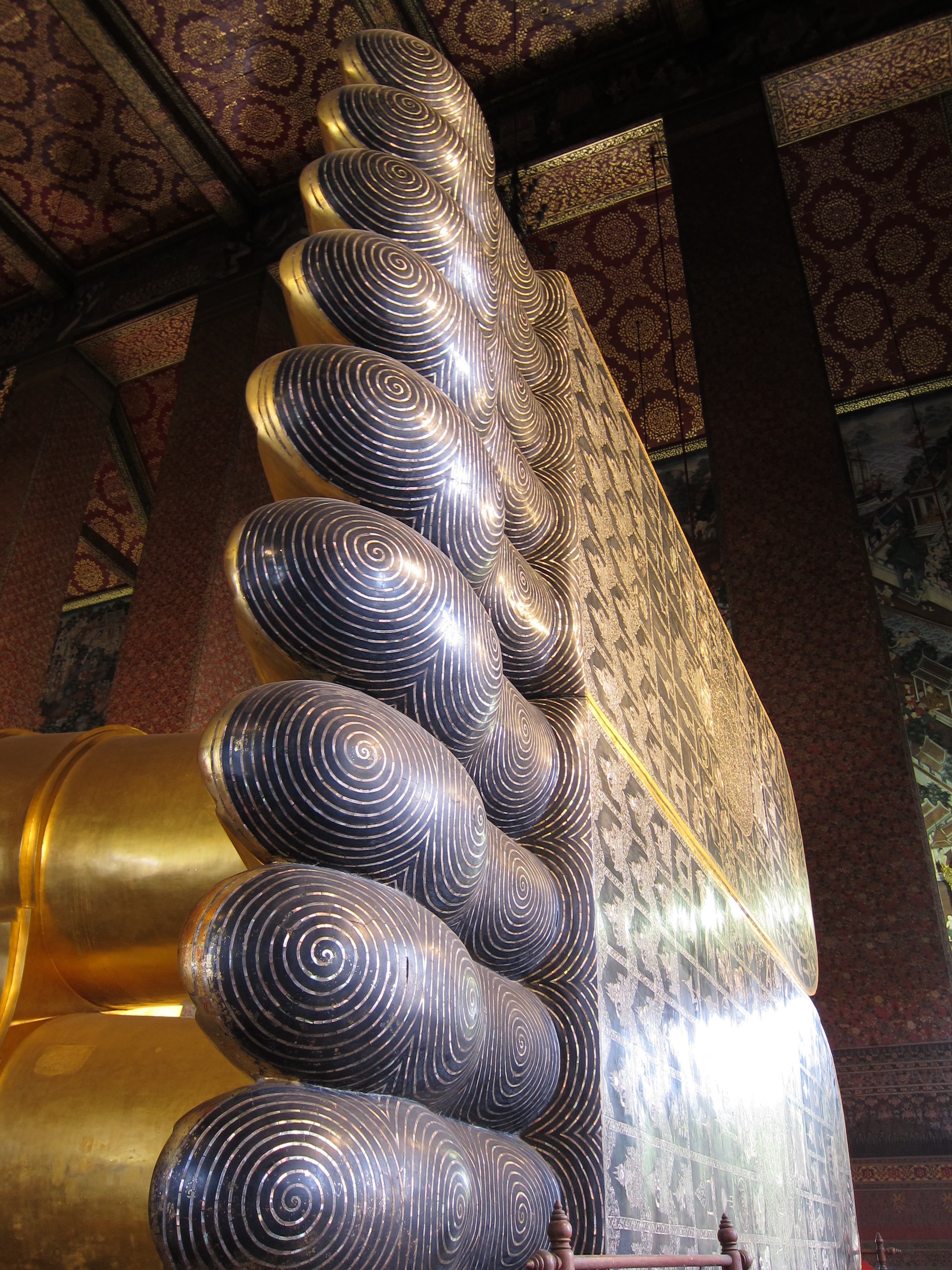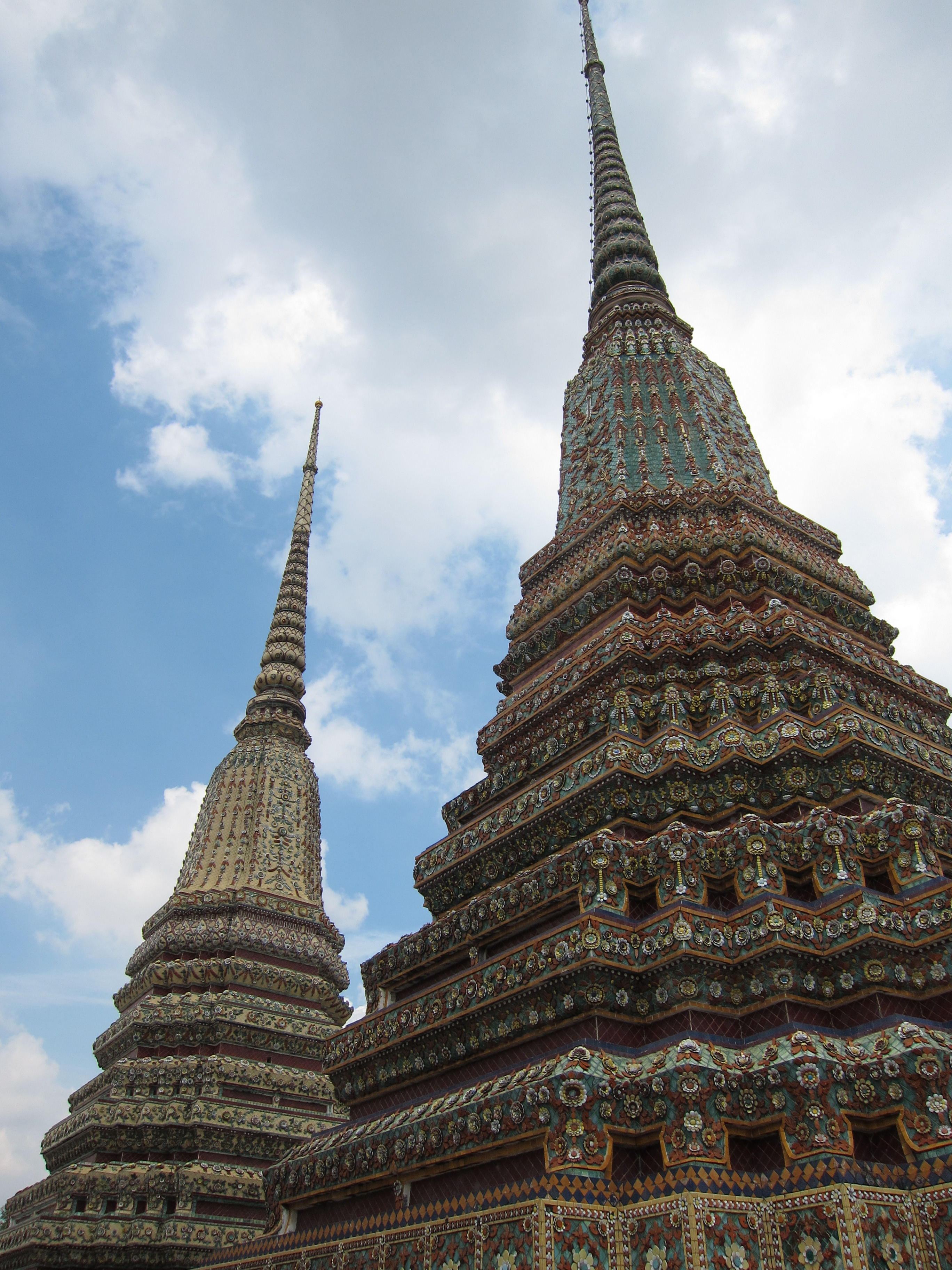 I got off the boat at Wat Pho and spent some time there exploring the complex and taking photos. Then I took a small ferry-boat across the river to get to Wat Arun, “The Temple of Dawn,” where I was able to climb up the tower to take some photos of the Bangkok skyline (see Thurs 6 Nov post).