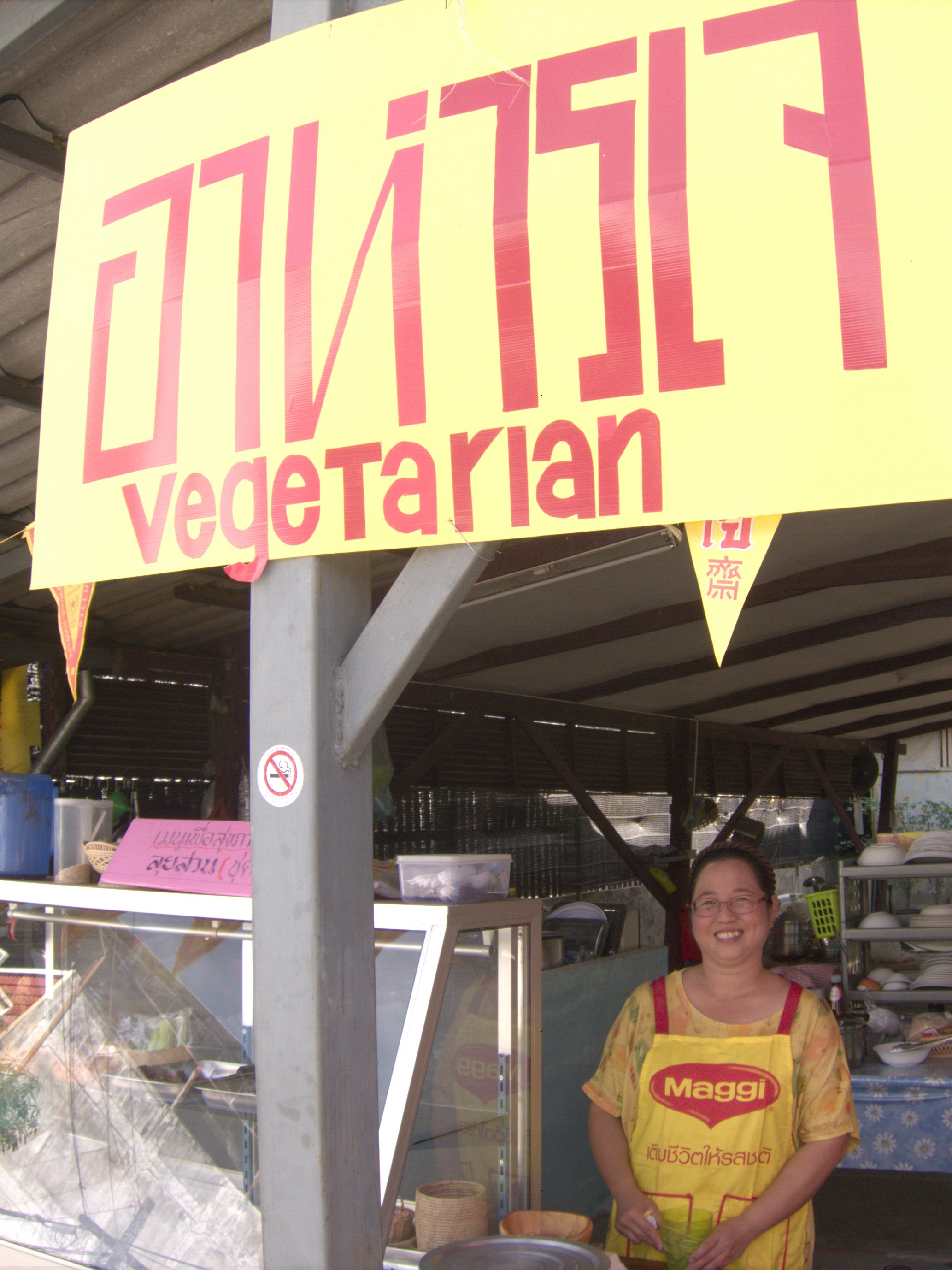 There were a number of restaurants here offering vegetarian food. My favorite place was called “Khrua 14” (Khrua means “kitchen” in Thai), where everything was vegetarian. There were also some tea shops run by Burmese immigrants, as well as a few very lively street markets.