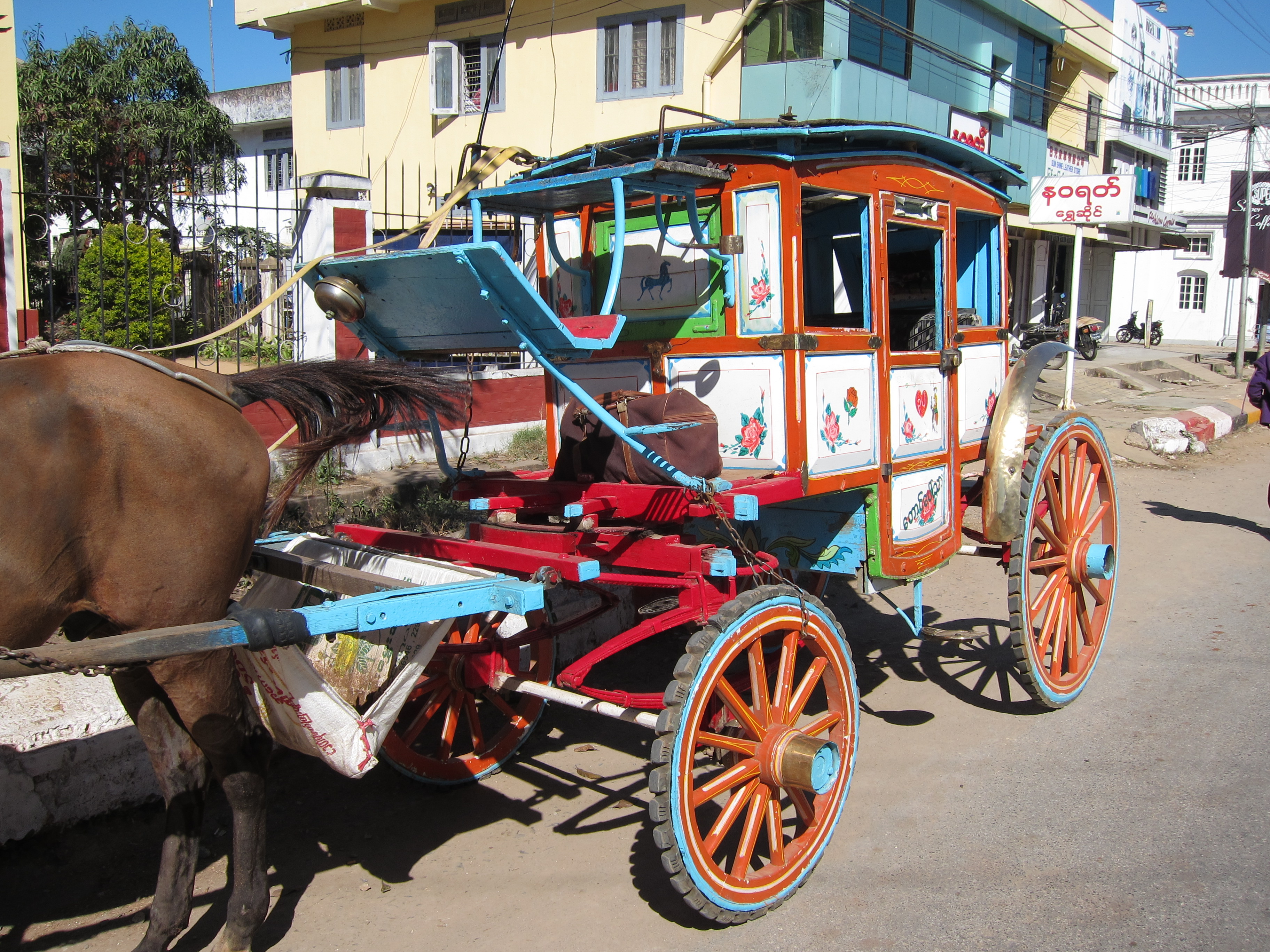 Pyin Oo Lwin was full of ancient horse-drawn carriages that mainly congregated near the market but could be seen just about anywhere on the main thoroughfares and side streets, transporting their fares (mostly tourists) around town.