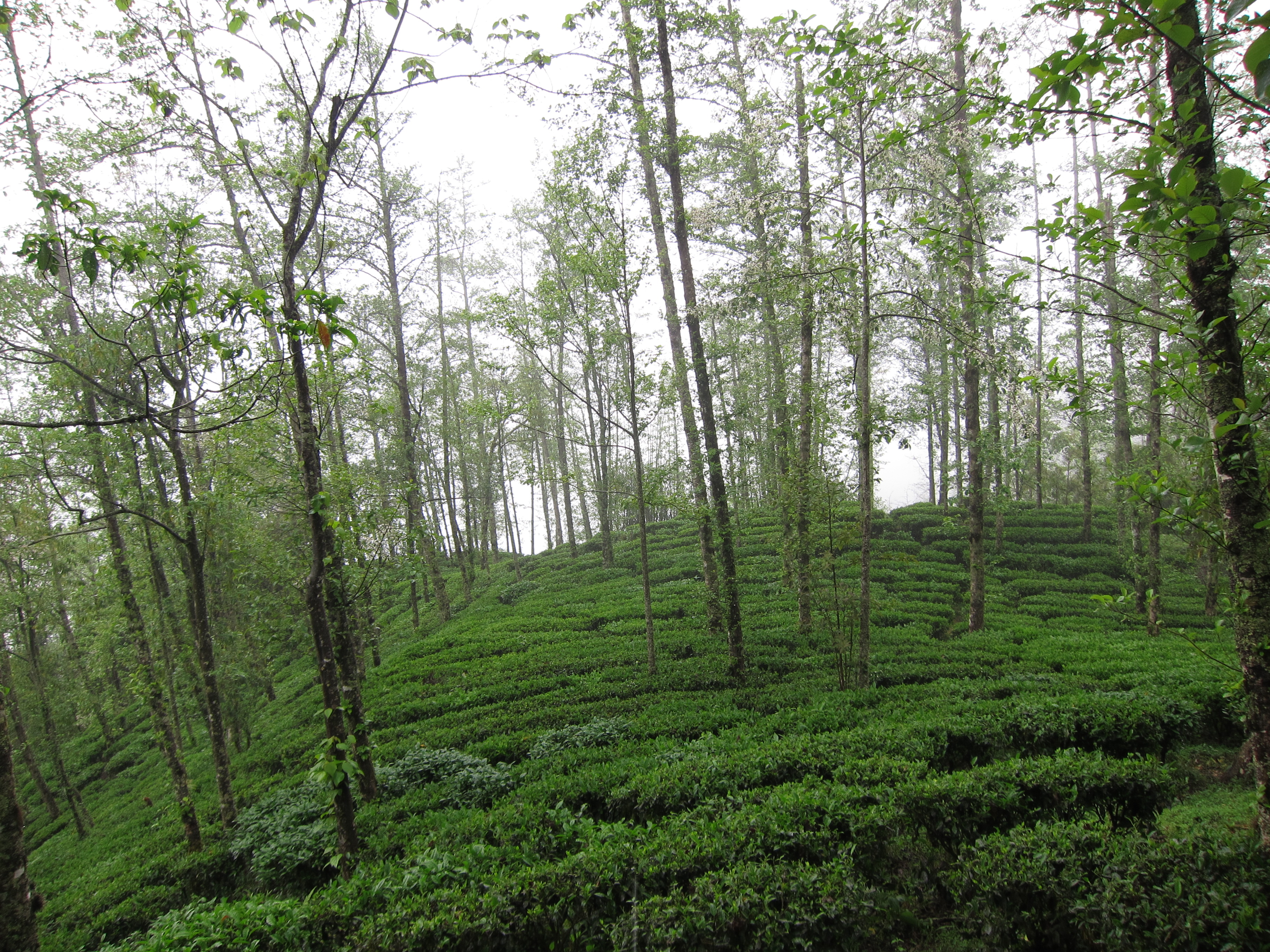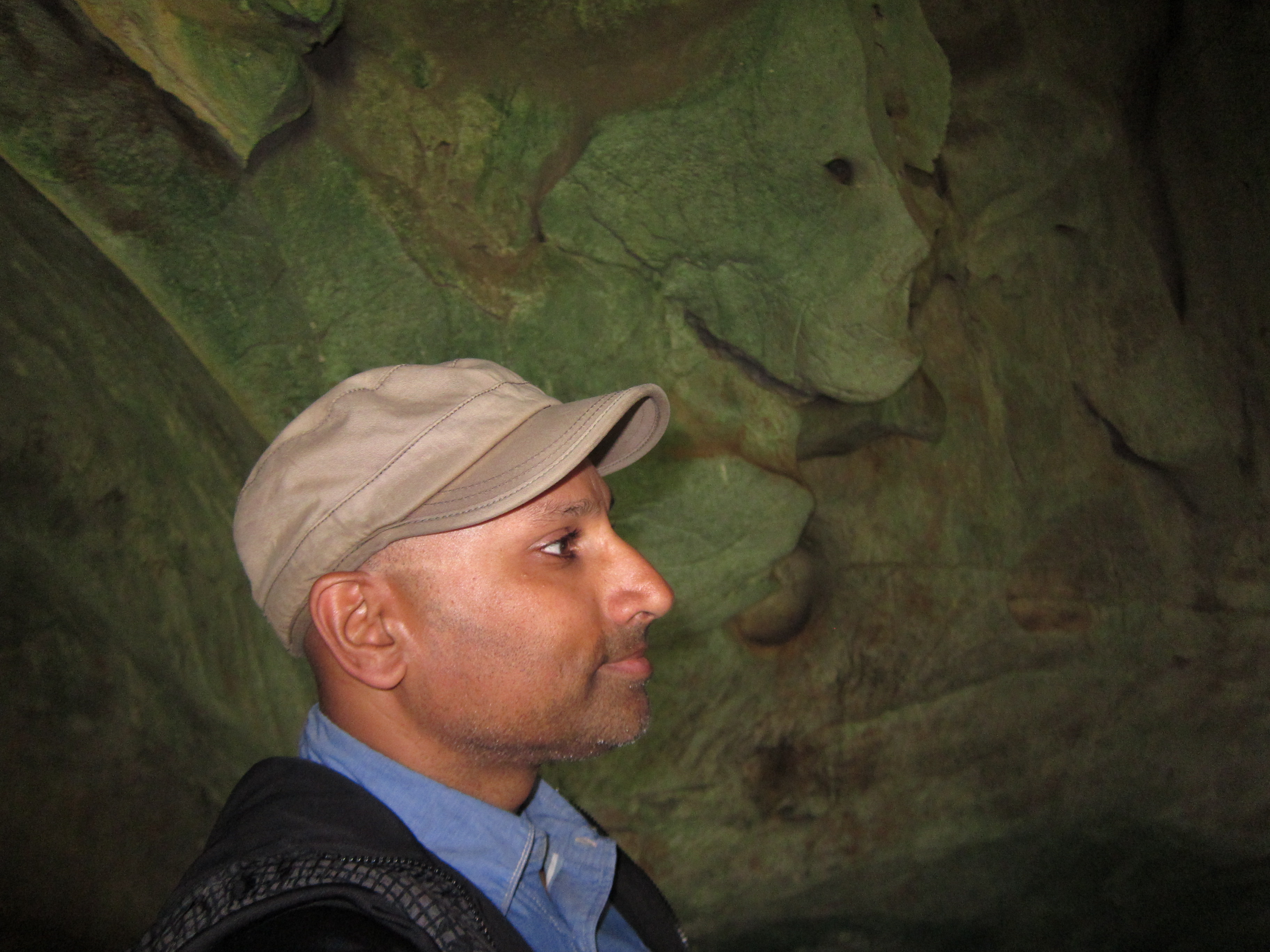 We set out in the cold drizzle. I had a raincoat, umbrella and waterproof shoes, so I felt confident that I would stay fairly dry until the skies cleared in the afternoon, as Zee said was likely. Much of the time we were literally walking through a cloud, and so were unable to see into the valley where our destination lay.