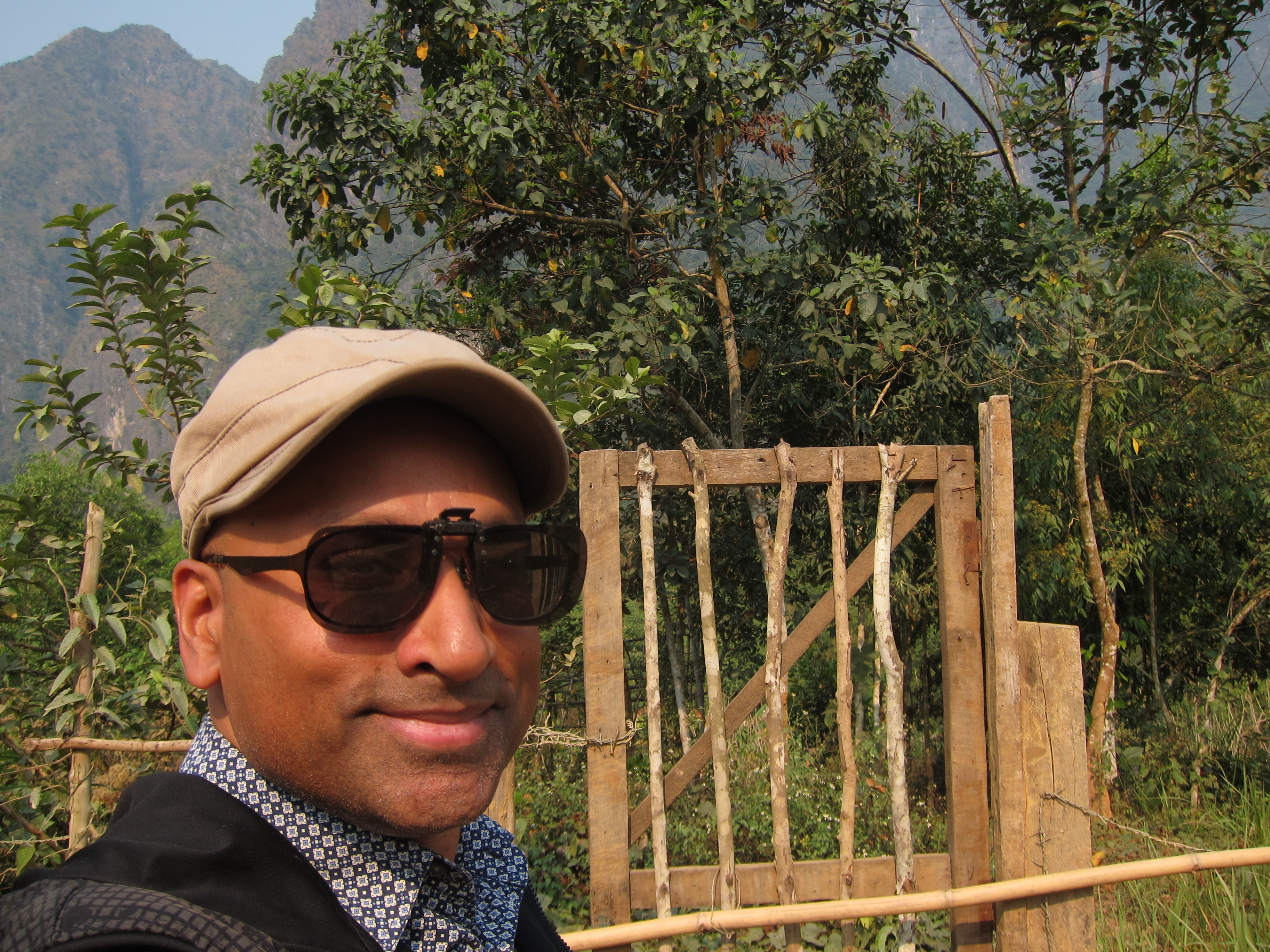 Even with the poor visibility and my wet condition, I enjoyed being in the fresh air and passing through agrarian villages full of various Hmong people identifiable by their traditional garments. We stopped near one of the villages for lunch inside a large shed full of Hmong women and children, including a few babies strapped to the backs of their mothers or older sisters.