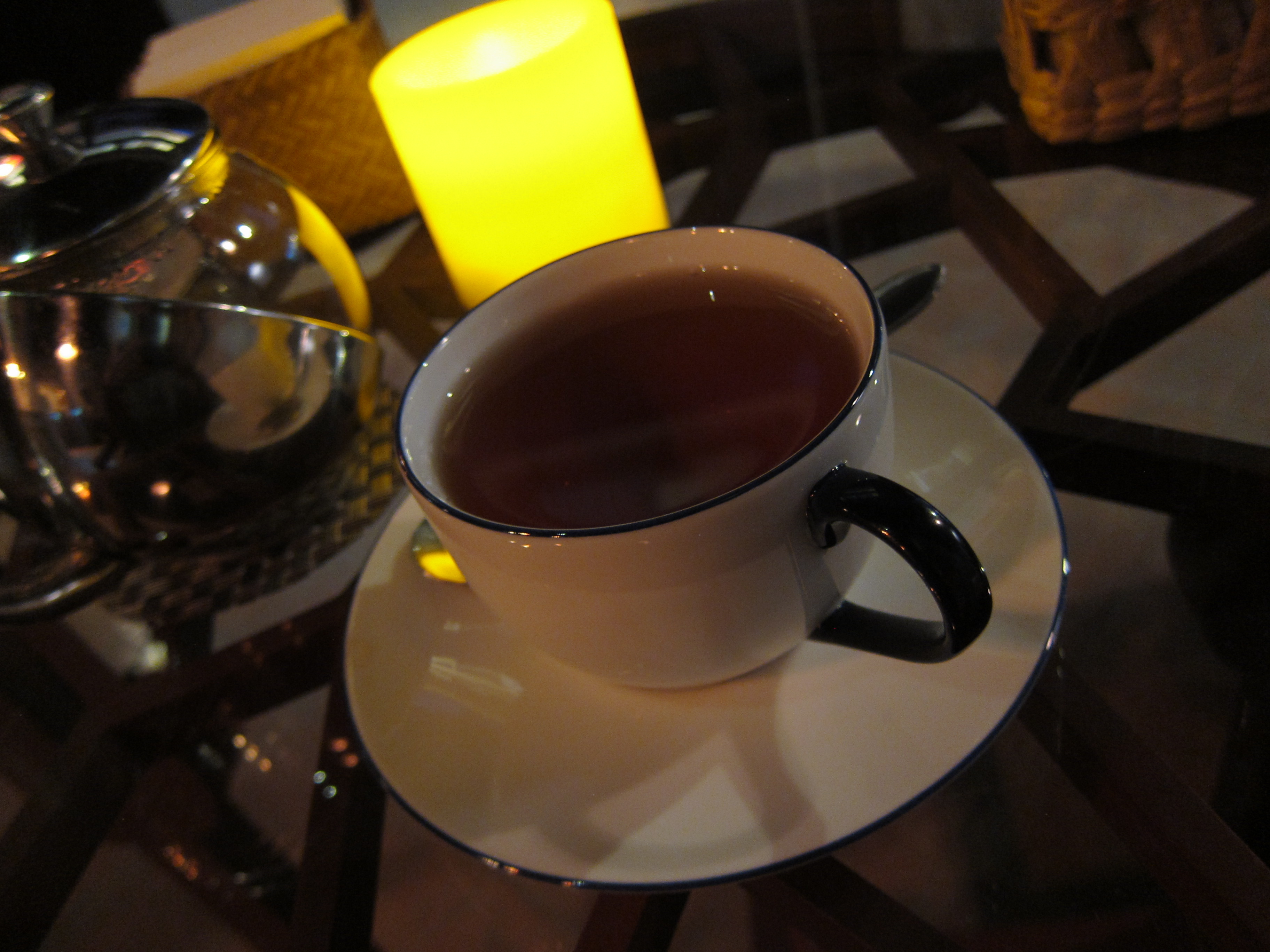 Having a Chinese Lapsang Souchong tea at Chez Matt, Luang Prabang.