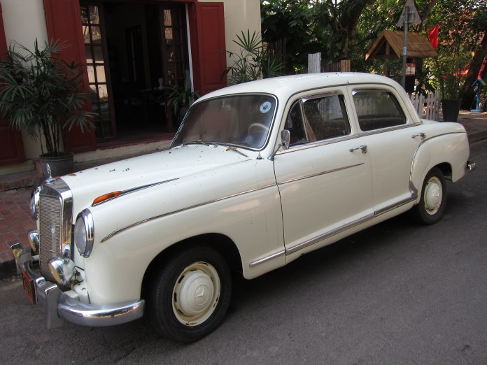 Parked near the Mercedes Benz, this Citroen also had a sign in its window describing it, stating, “This icon of Luang Prabang is one of the only two original Citroens in Laos. Custom ordered at the same time as the Citroen that belonged to the King, currently exhibited at the Royal Museum.”